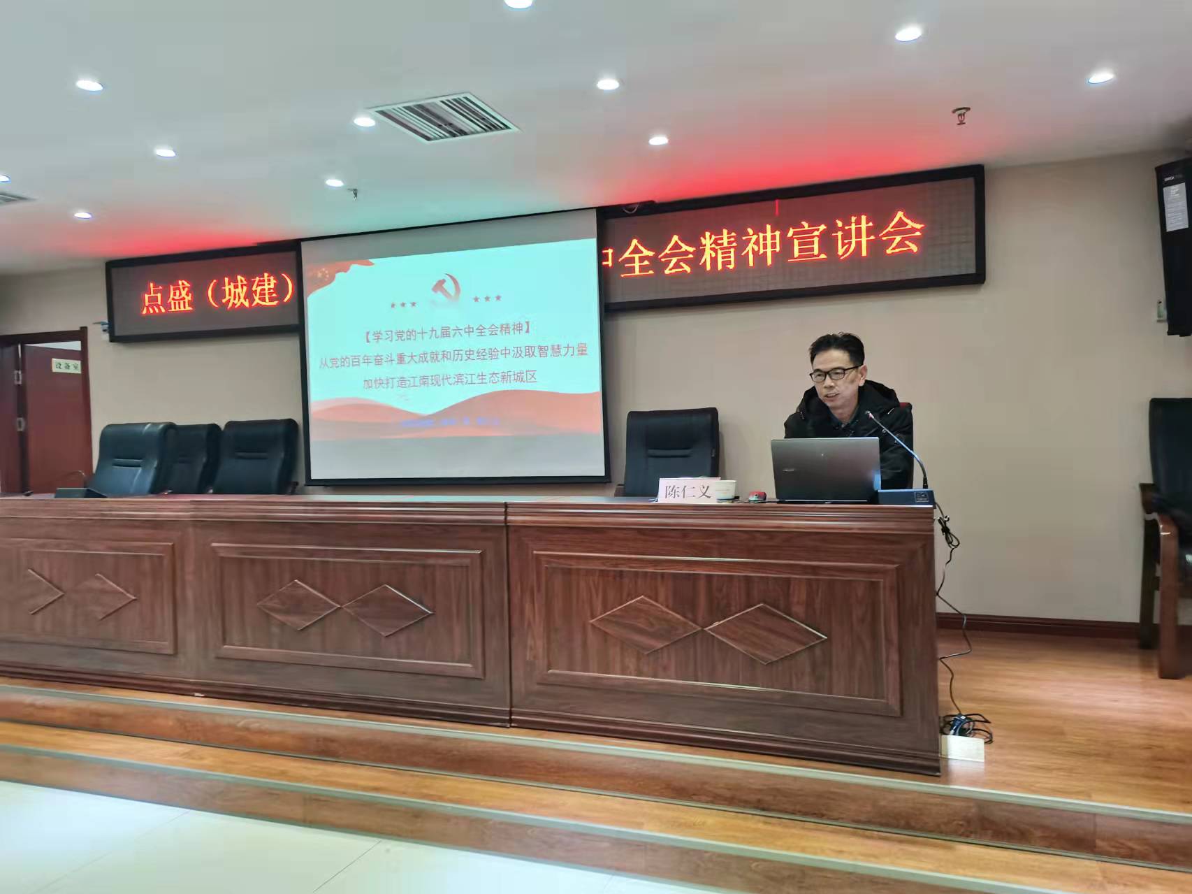 陳仁義以從黨的百年奮斗重大成就和歷史經(jīng)驗(yàn)中汲取智慧力量,加快打造江南現(xiàn)代濱江生態(tài)新城區(qū)”為題,從我們黨為什么要做關(guān)于黨的百年奮斗歷程的決議、中國共產(chǎn)黨百年奮斗歷程的四個時期、中國共產(chǎn)黨百年奮斗的歷史經(jīng)驗(yàn)總結(jié)和我們應(yīng)該怎么做四個方面作詳細(xì)闡述。號召全體干職工要以十九屆六中精神為指引,解放思想、干在實(shí)處、爭當(dāng)表率,切實(shí)履行國有企業(yè)的政治責(zé)任、社會責(zé)任和經(jīng)濟(jì)責(zé)任。