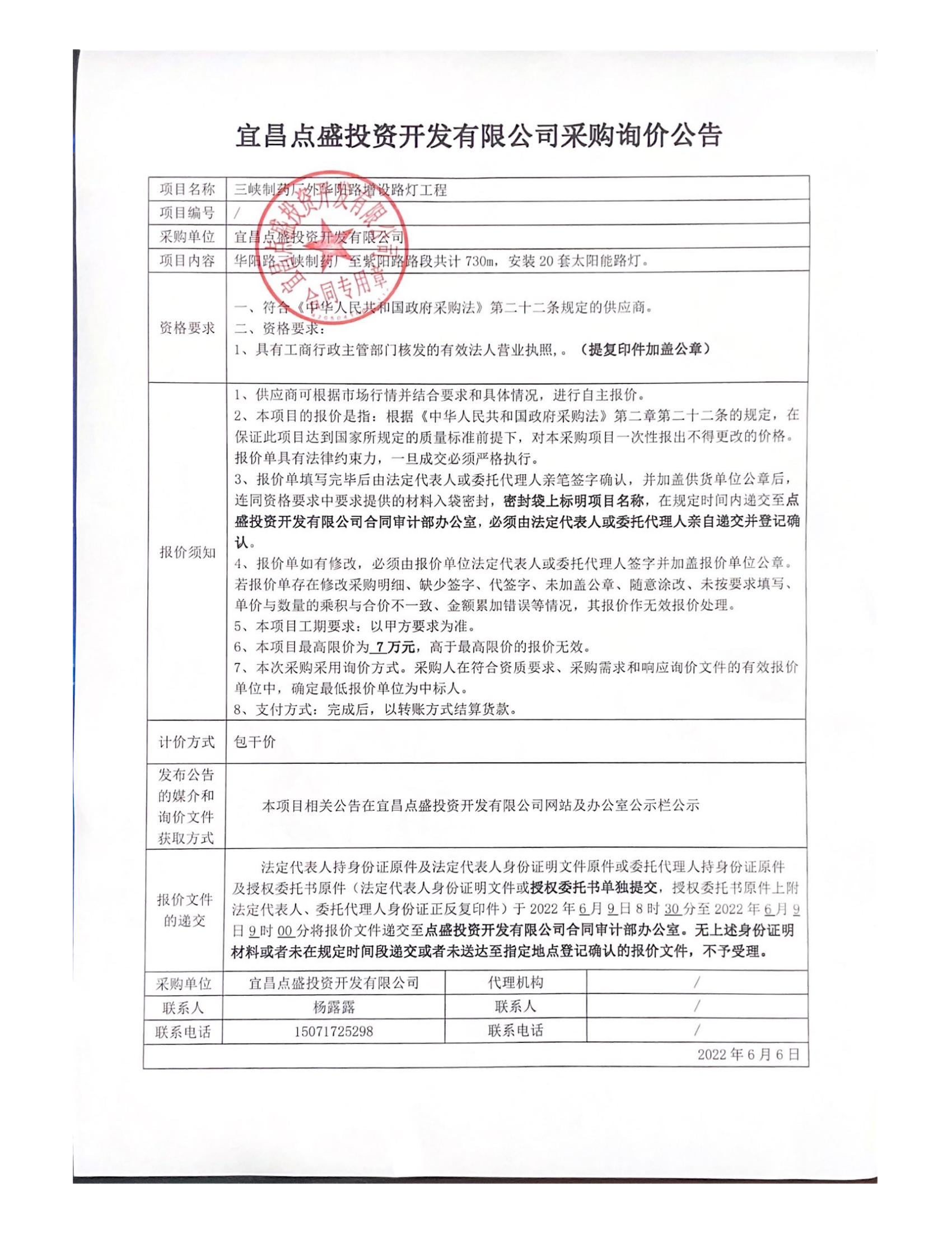詢價公告-三峽制藥廠外華陽路增設路燈工程
