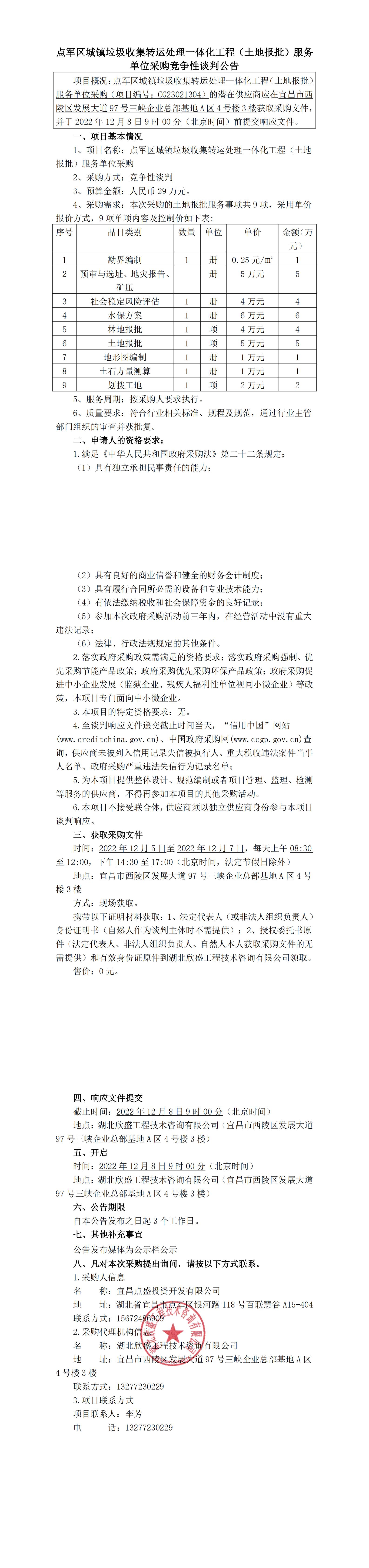 點軍區(qū)城鎮(zhèn)垃圾收集轉(zhuǎn)運處理一體化工程(土地報批)服務(wù)單位采購競爭性談判公告