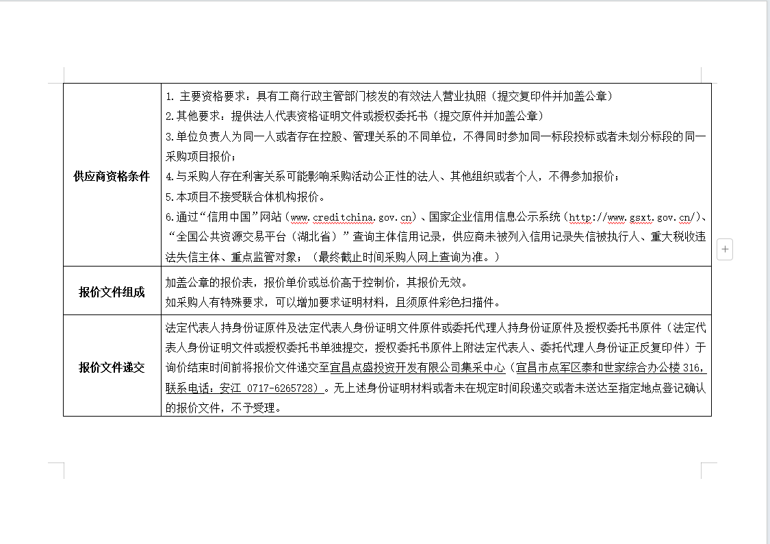詢價(jià)公告