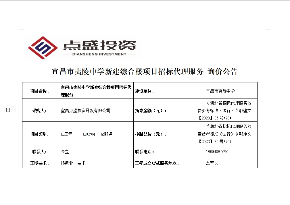 宜昌市夷陵中學(xué)新建綜合樓項目招標代理服務(wù)詢價公告