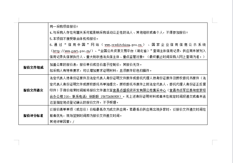 詢價(jià)公告