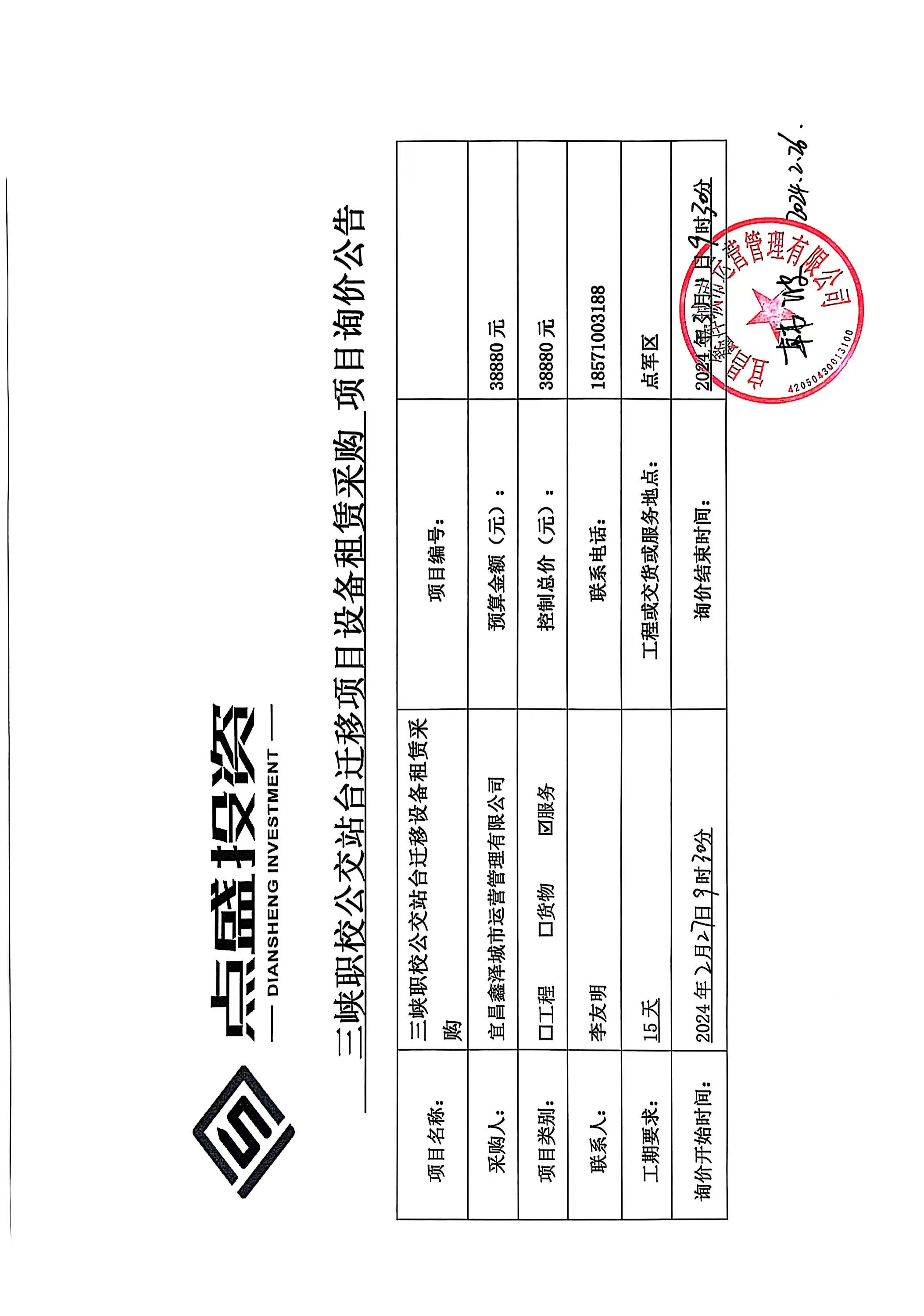 三峽職校公交站臺(tái)遷移項(xiàng)目設(shè)備租賃采購(gòu)成交公告