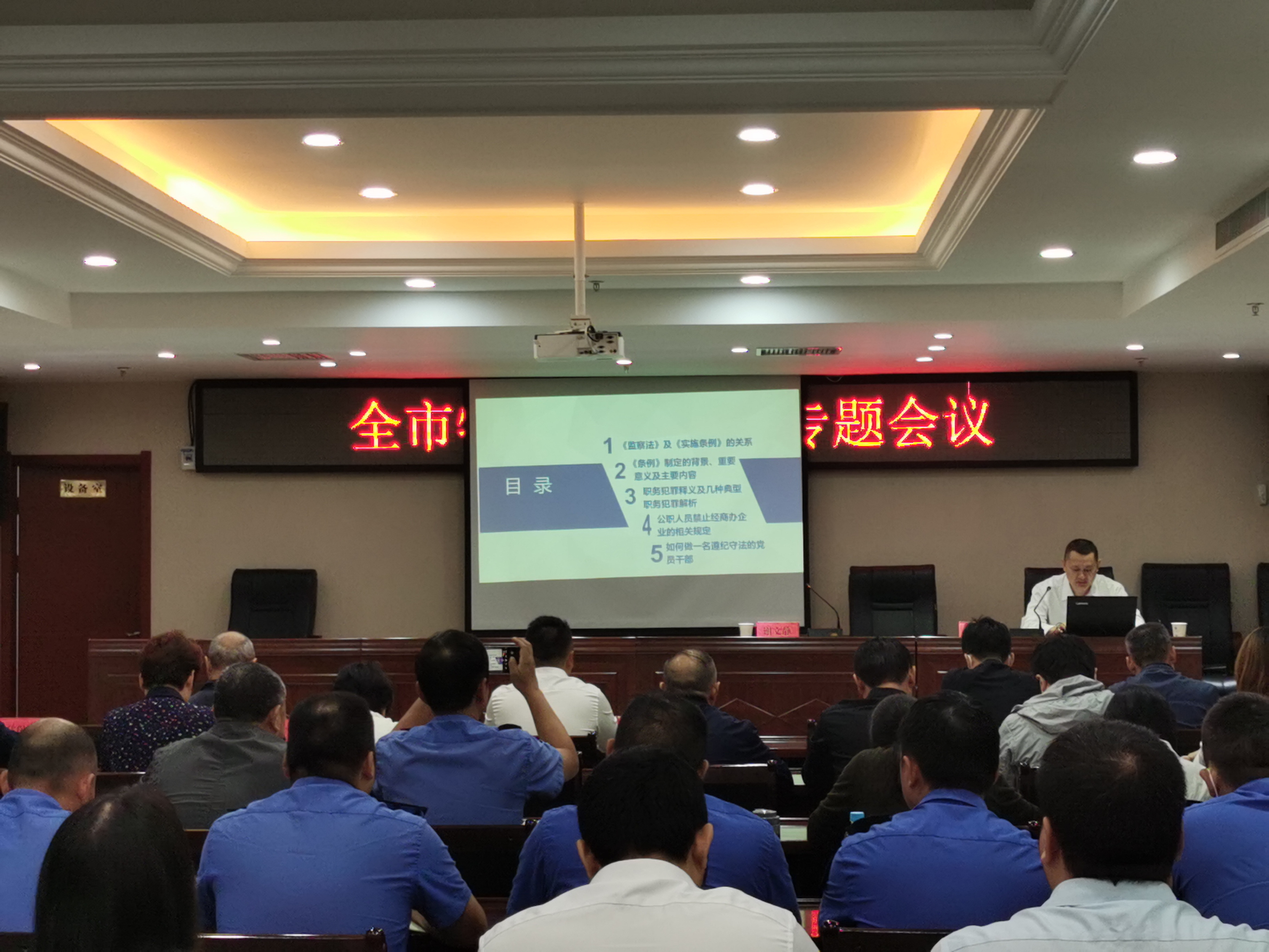 (通訊員:韓雪瑩、胡瑞文)9月28日上午,點(diǎn)軍區(qū)紀(jì)委常委、區(qū)監(jiān)委委員文生權(quán)受邀到住建環(huán)保系統(tǒng)開(kāi)展紀(jì)法宣講。 宣講以《學(xué)習(xí)貫徹<監(jiān)察法實(shí)施條例>繃緊廉潔自律之弦》為題,從《監(jiān)察法》及實(shí)施條例的關(guān)系,《條例》制定的背景、重要意義及主要內(nèi)容,職務(wù)犯罪釋義及幾種典型職務(wù)犯罪解析,公職人員禁止經(jīng)商辦企業(yè)的相關(guān)規(guī)定,如何做一名遵紀(jì)守法的黨員干部五個(gè)方面進(jìn)行講解,以案說(shuō)紀(jì),進(jìn)一步教育廣大黨員干...